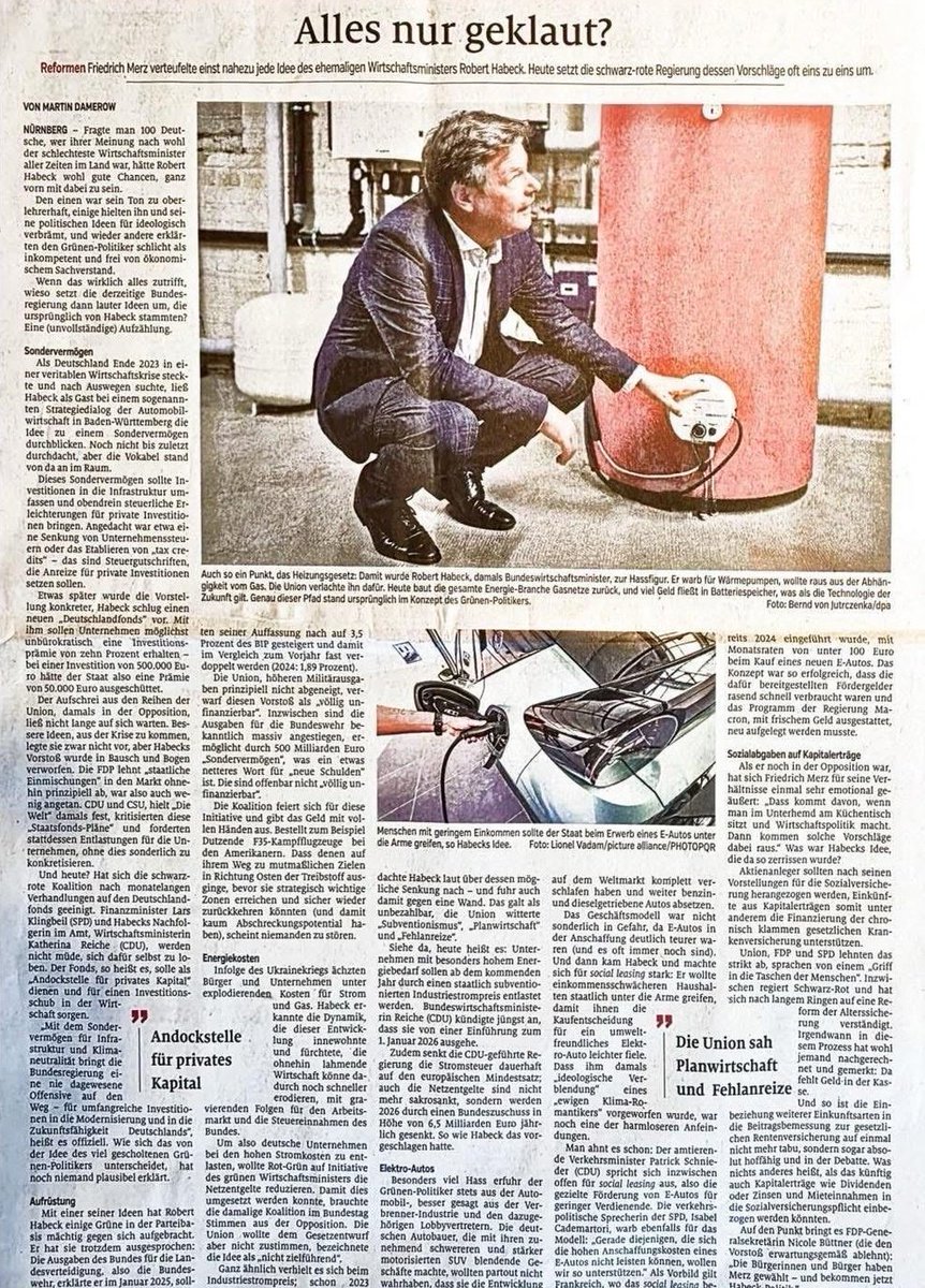 Die Nürnberger Nachrichten schrieben es auch dem Markus S. nochmal minutiös auf: ALLES, was ...#Habeck für die Entlastung und Förderung der Wirtschaft vorschlug & was die Union seinerzeit verteufelte, setzt sie heute nahezu 1:1 um.